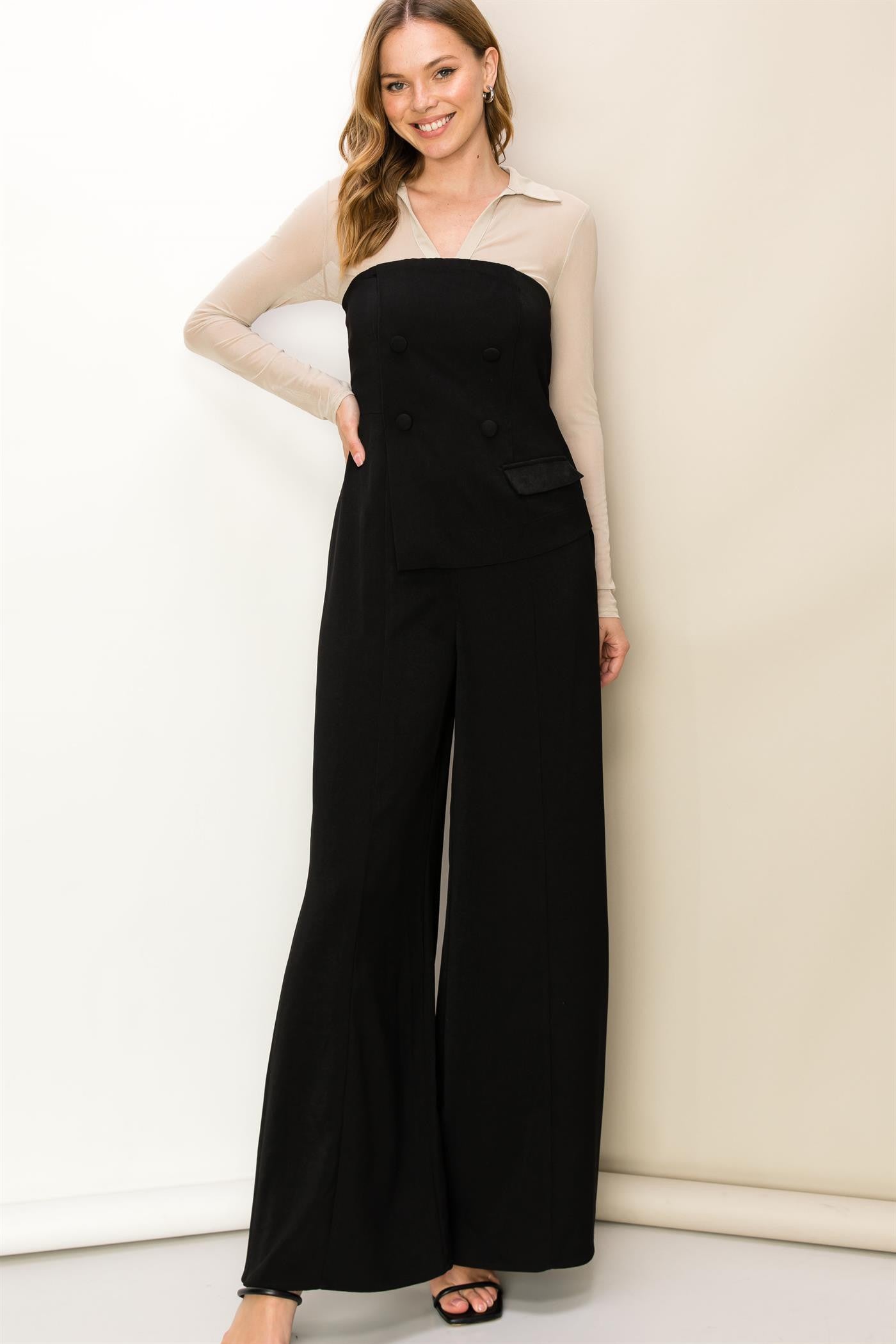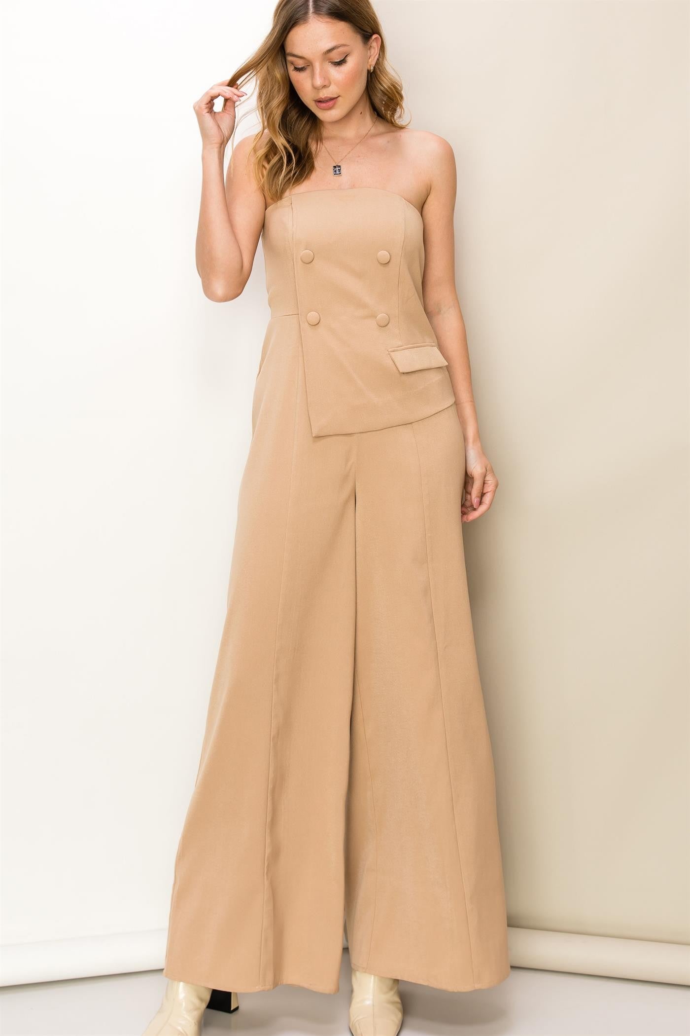 Palazzo strapples con botones al frente y pantalón en corte ancho